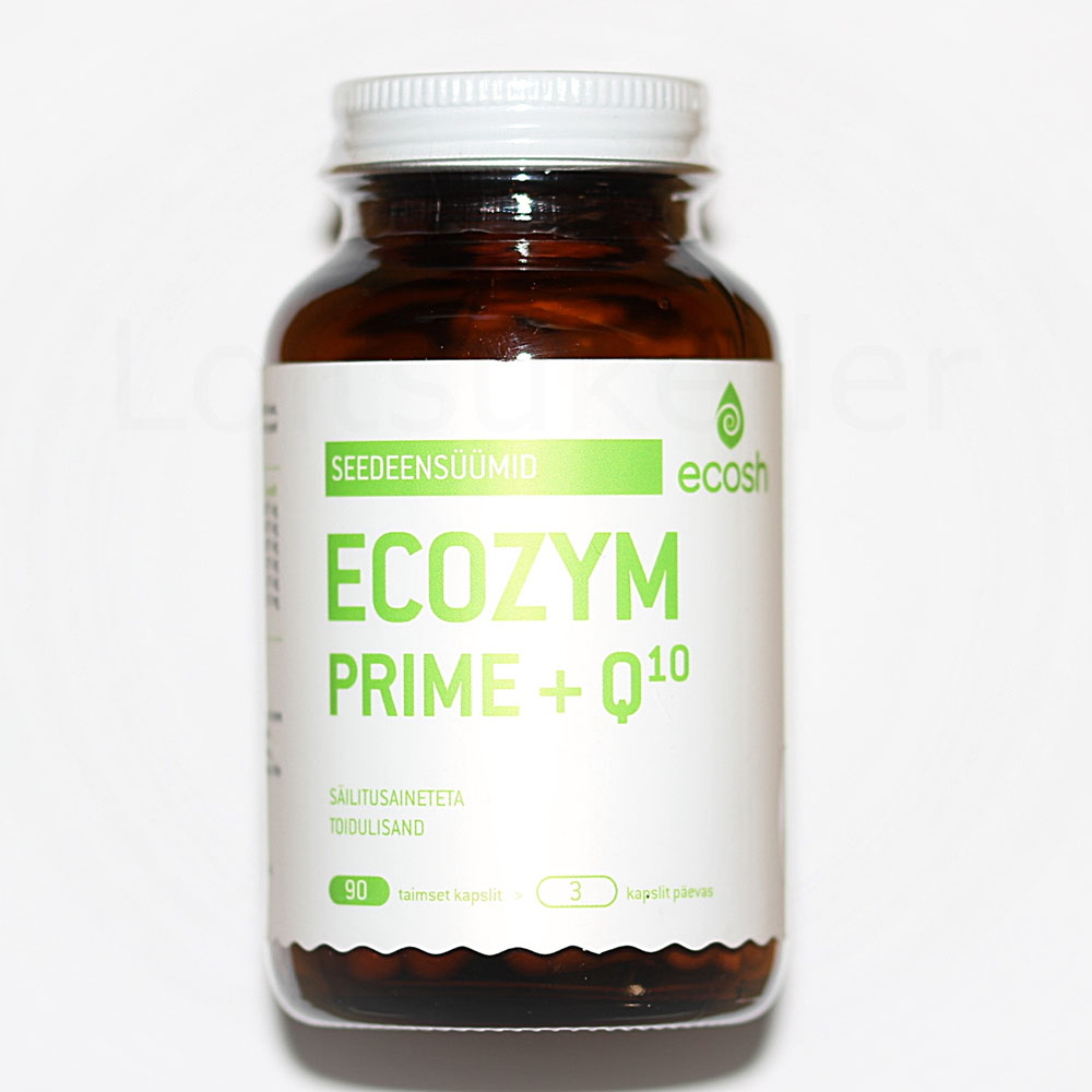 ECOZYM PRIME seedeensüümid koos rakke kaitsva ja energiapotentsiaali suurendava koensüüm Q10-ga. Ecozym PRIME seedeensüümid toetavad toidu lagundamist, ainevahetust ning aitavad kaasa mikrofloora tasakaalustumisele. Tootes sisalduvad ensüümid aitavad seedida nii valke, rasvu kui süsivesikuid.